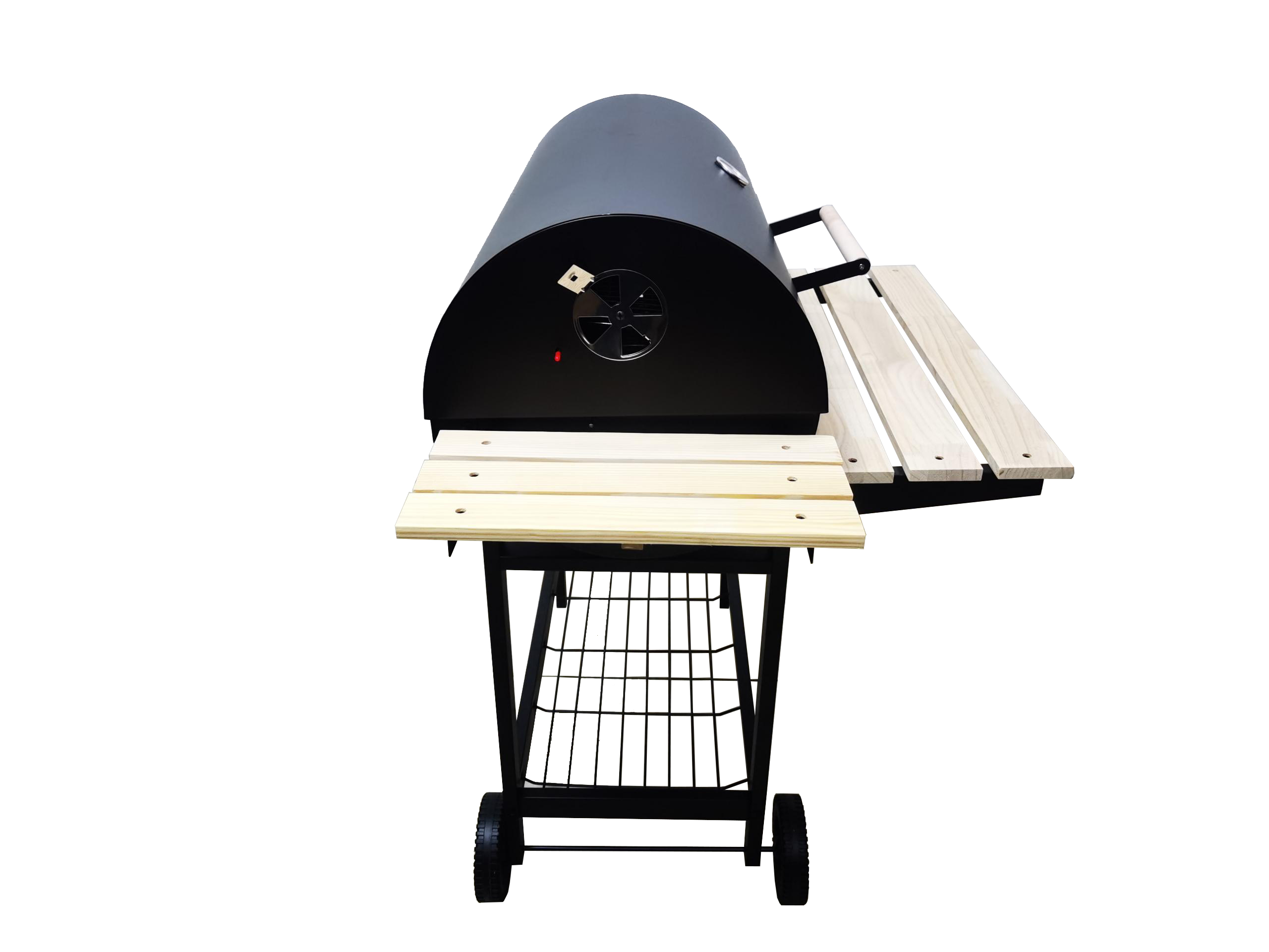 One of the standout features is the multifunctional side tables. Crafted from durable and stylish natural wood, these tables not only accentuate the grill’s modern look but also provide ample prep space for your sauces, utensils, and ingredients. When not in use, they conveniently fold down, maximizing space efficiency. Beneath the grill, a sturdy wire mesh storage rack keeps essentials like charcoal and wood chips within reach, making outdoor cooking as convenient as it is enjoyable. Adding to this convenience are the rugged wheels, enabling easy mobility so you can transport the grill anywhere—from your backyard to a campsite.But this charcoal grill isn’t just about performance. It’s designed to make a lasting impression. The cool-to-touch ergonomic wooden handles ensure safe access to the lid, while the rustic yet sleek natural wooden accents offer a blend of modern craftsmanship and timeless style. Yangjiang Silver Star Trading Co., Ltd has combined durability, portability, and aesthetics into one eye-catching package, making this grill the perfect centerpiece for your patio or backyard gatherings.When it comes to hosting outdoor parties or enjoying quiet evenings with family, this charcoal grill delivers exceptional versatility and unmatched quality. As a trusted company with decades of export experience in housewares, Yangjiang Silver Star Trading Co., Ltd brings you this innovative grill to redefine grilling as you know it. Whether you’re cooking for a small family dinner or entertaining a larger crowd, this grill guarantees superior performance.With its adjustable air control vent, robust iron frame, and dual-level grilling surface, this charcoal grill is tailored for the modern culinary enthusiast. Engineered for easy transport, innovative utility, and elegant design, it allows you to create flavorful meals without compromise. Take pride in your outdoor setup and transform every barbecue into a memorable event. Choose the charcoal grill from Yangjiang Silver Star Trading Co., Ltd—a functional and fashionable grilling solution that meets the demands of those who appreciate style and performance.Don’t settle for ordinary; aim for extraordinary with the ultimate masterpiece in outdoor charcoal grills.