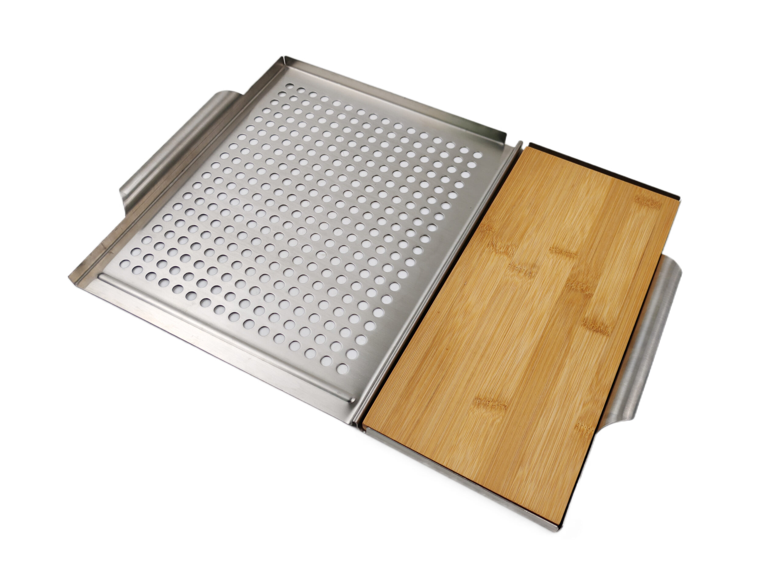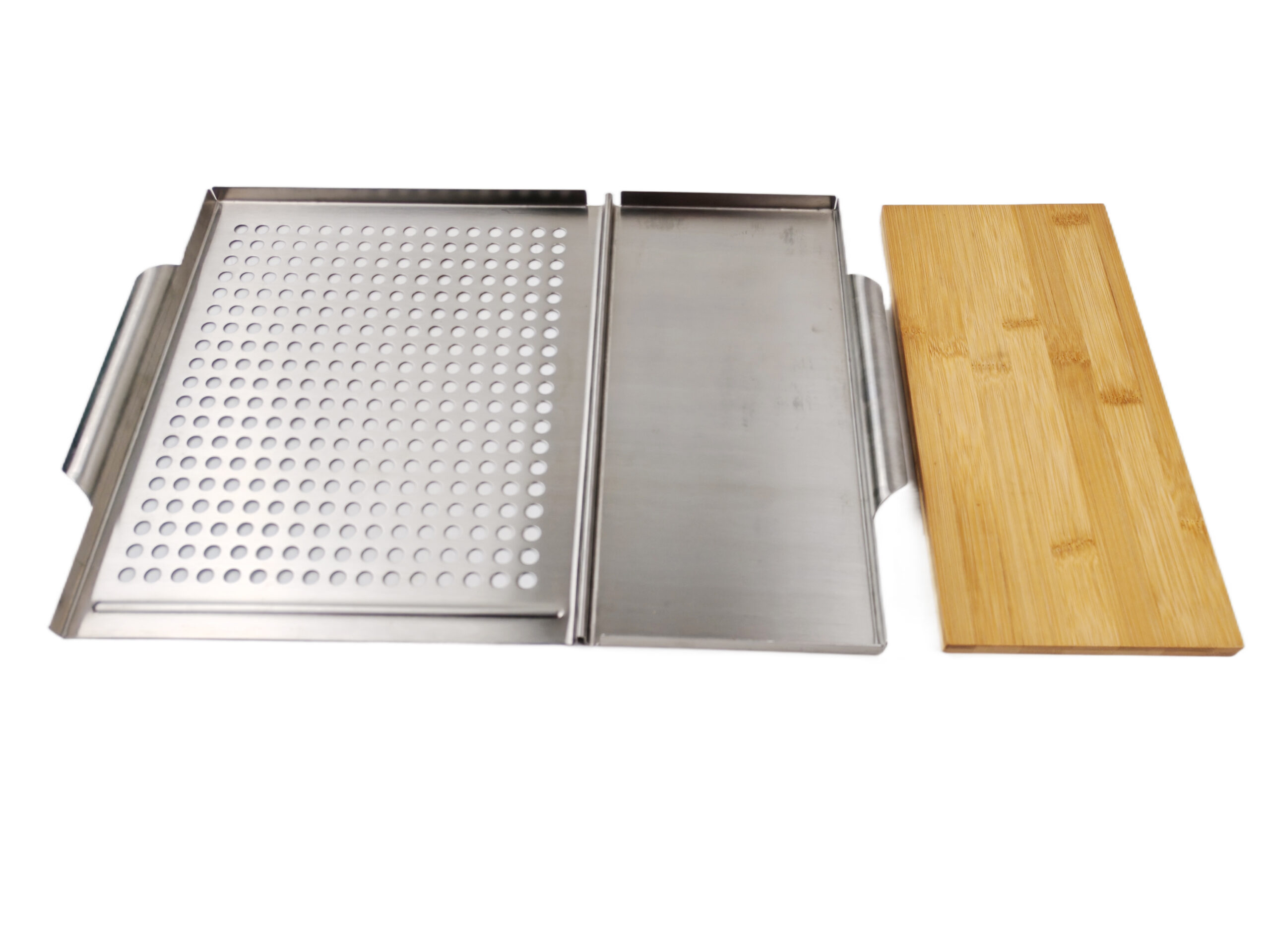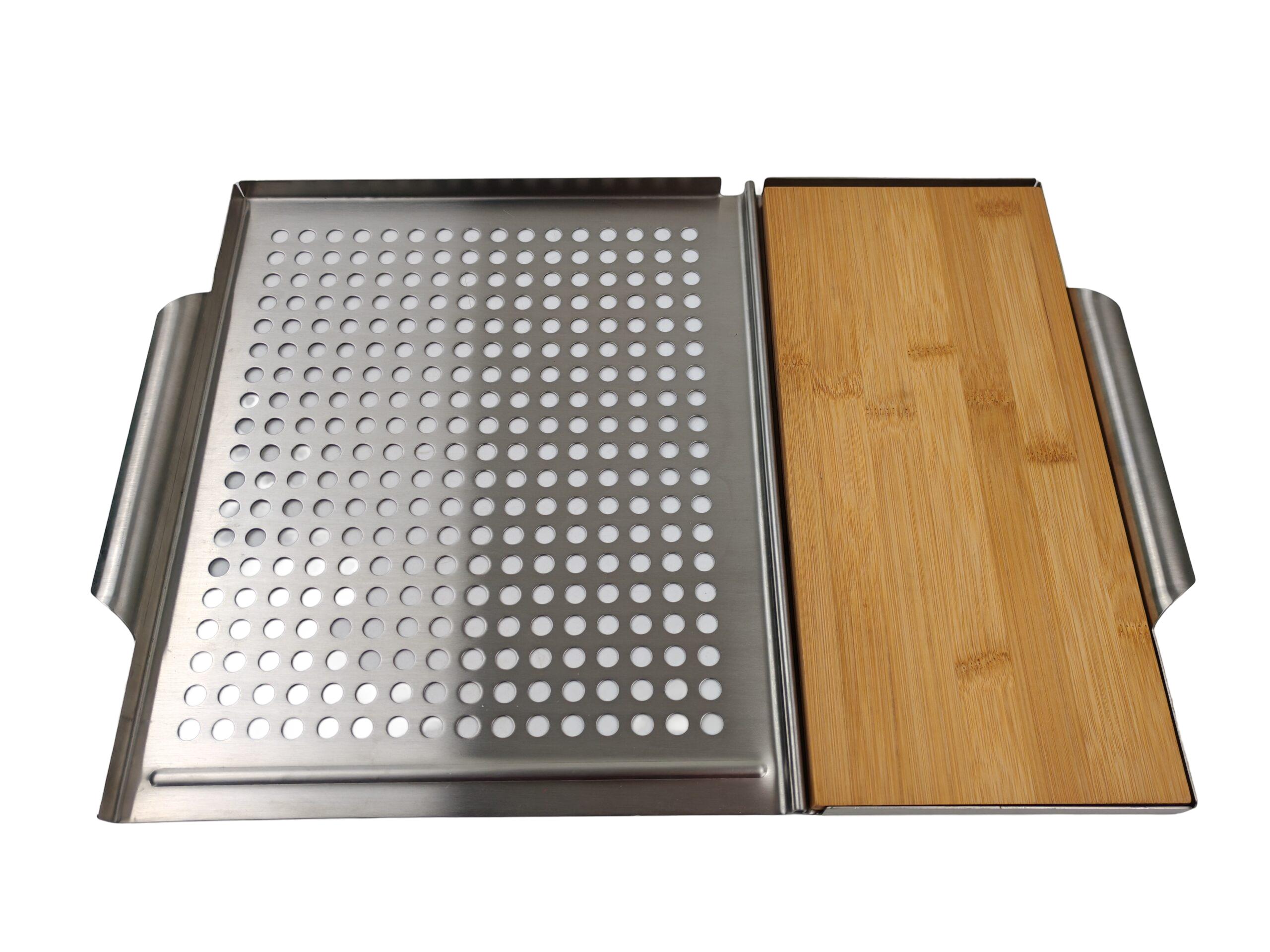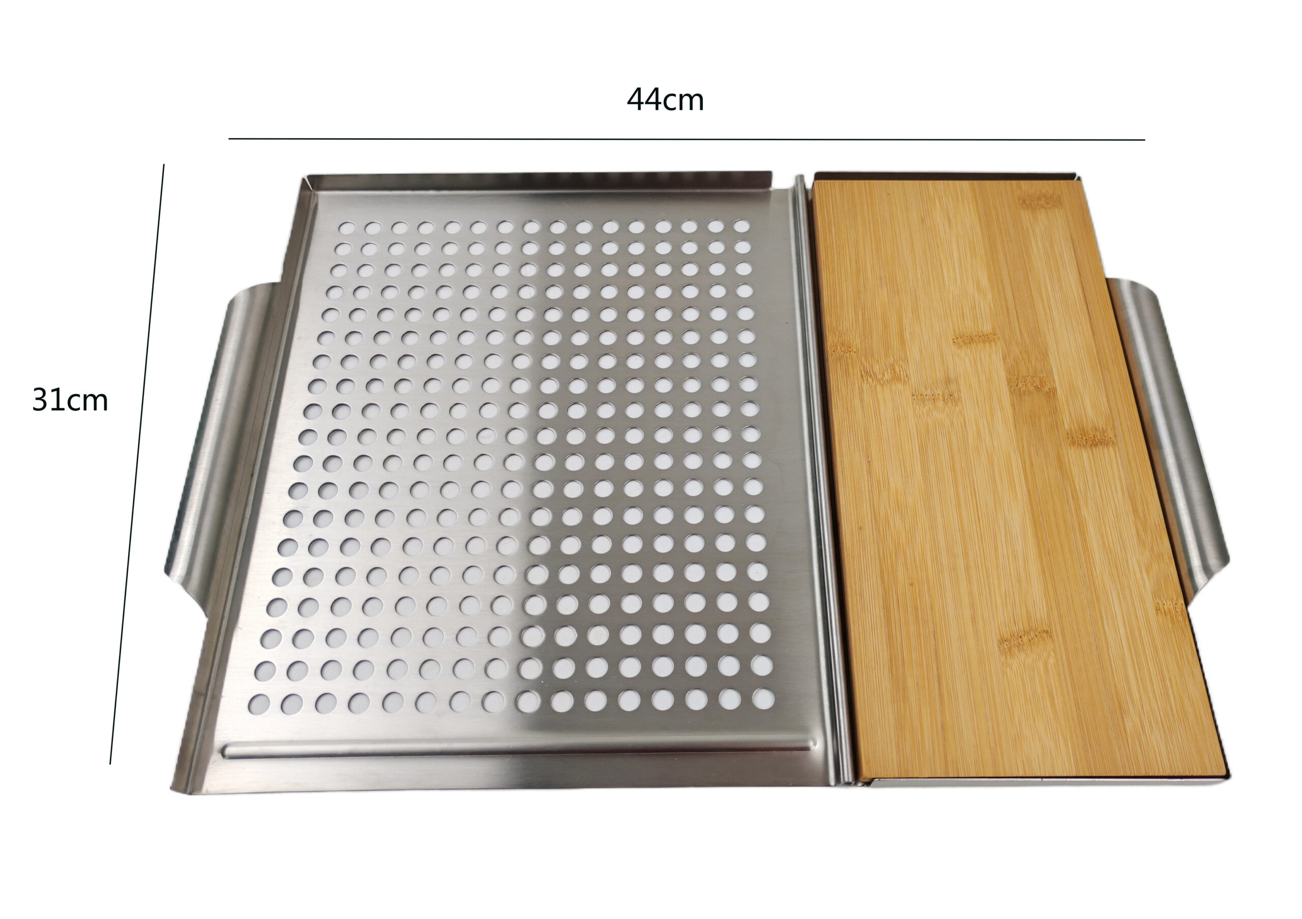 Grill Pan with Bamboo Board Babecue pan with cutting board Stainless steel grill topper