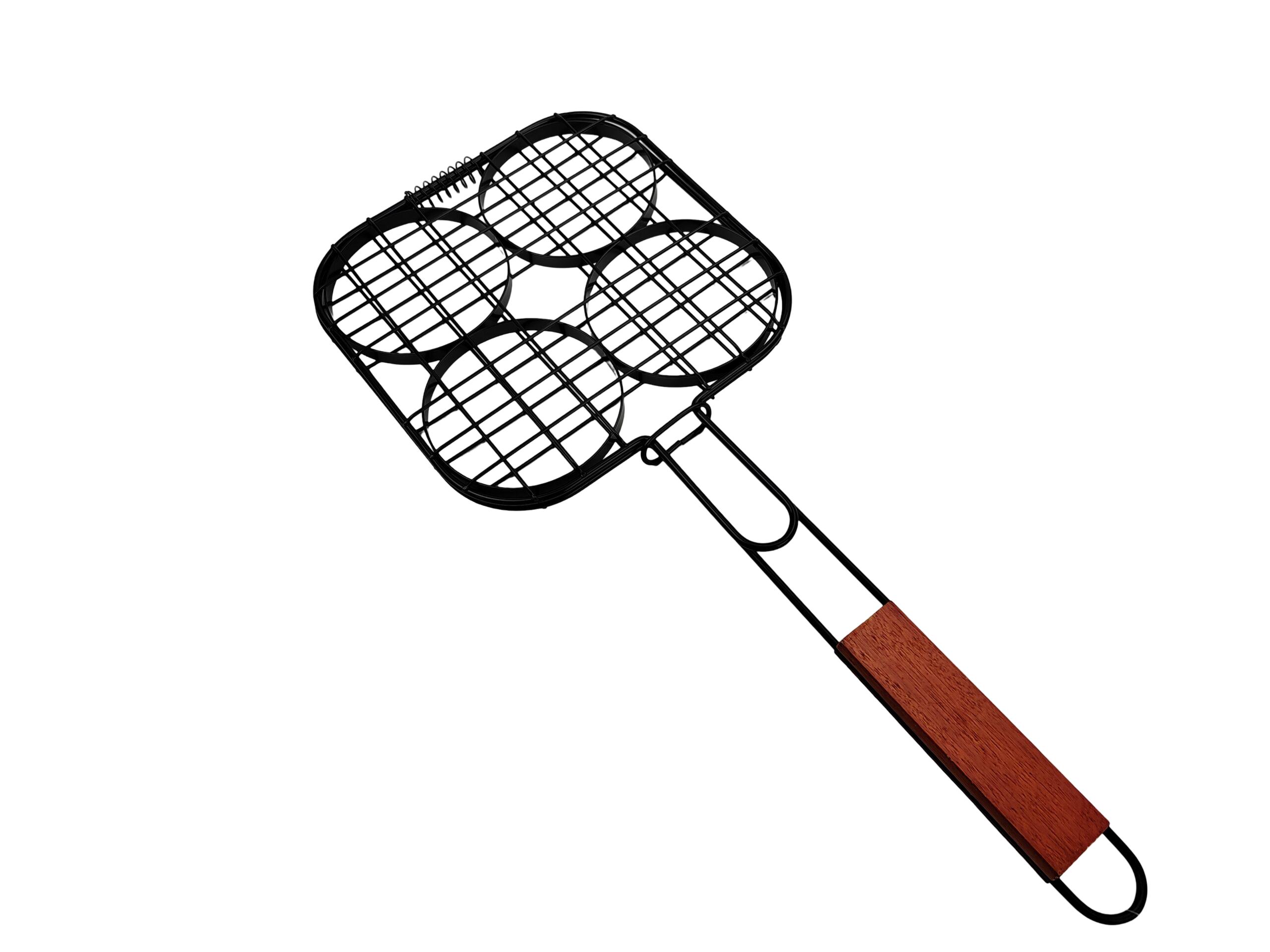 YBG0654 Burgers Grilling gridMaterial: Non stick painting wire, wooden handlesize:49.5*21*1cm; wire diameter: 4/2mm