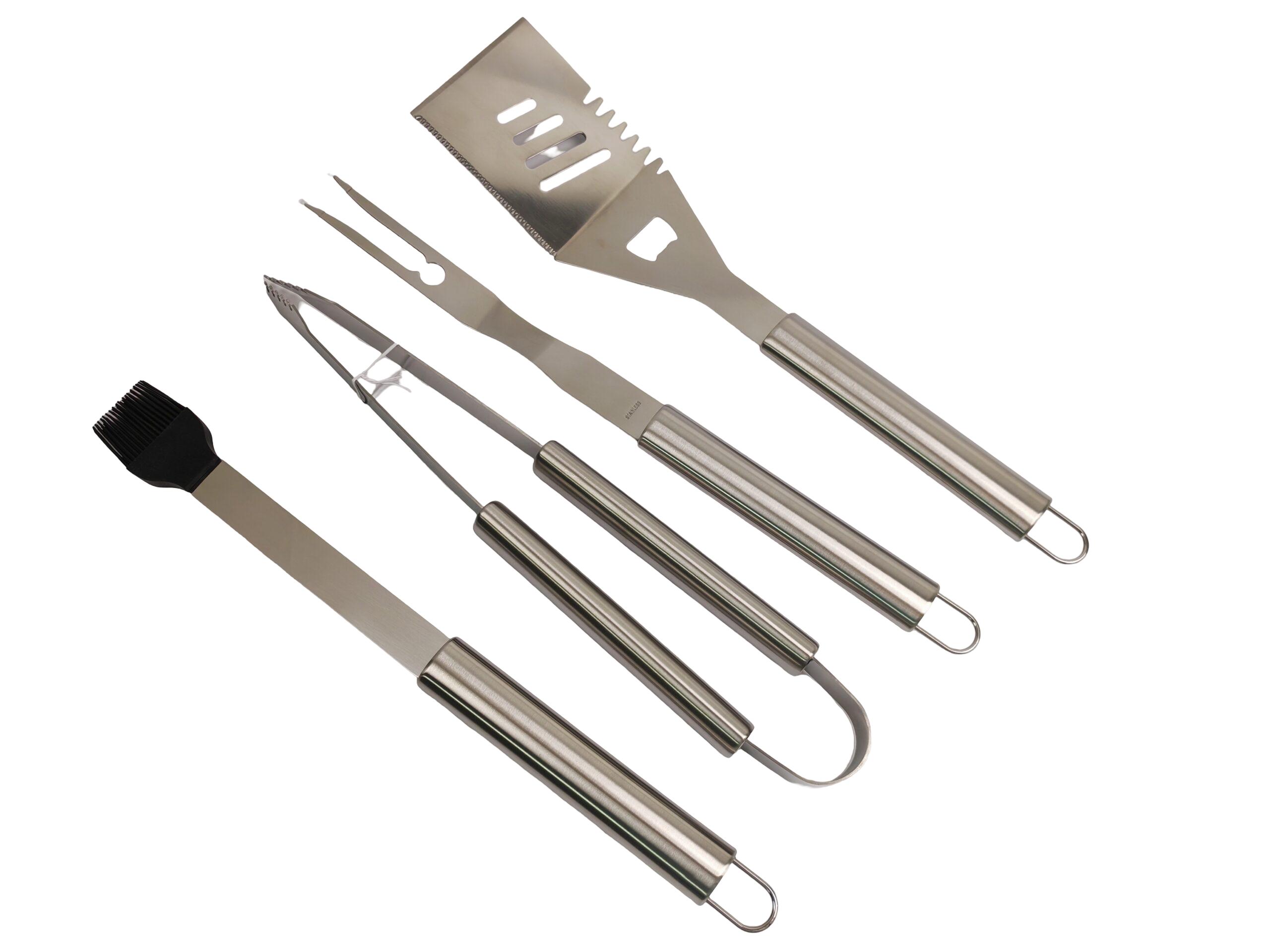 YJSH0744pcs BBQ tool set Material:stainless steelSpatula:43cmFork:43.5cmTongs:41cmBasting brush:42.5cm